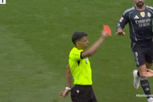 体育资讯09月13日讯 西甲第4轮,皇家马德里vs皇家社会。上半场比赛中,皇马后卫赫伊森犯规破坏皇家社会反击,被主裁曼萨诺直红罚下,而这也不是曼萨诺与皇马之间的第一次故事。