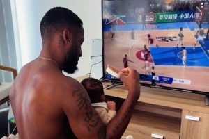 体育资讯9月15日讯 北京男篮外援杰曼今天更新社媒,晒出了带娃一起看自己的CBA集锦的时刻。