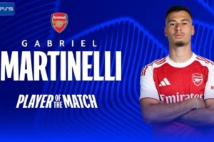 体育资讯9月17日讯 欧冠联赛阶段第1轮,阿森纳客场2-0毕尔巴鄂竞技。马丁内利替补出战,传射建功,赛后当选为全场最佳球员。