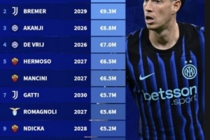 1、巴斯托尼(国米):1020万欧元