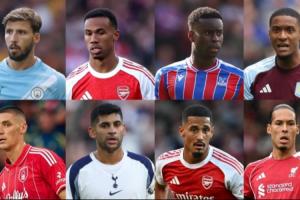 候选人有:鲁本-迪亚斯(曼城)、加布里埃尔(阿森纳)、格伊(水晶宫)、孔萨(维拉)、米伦科维奇(诺丁汉森林)、罗梅罗(热刺)、萨利巴(阿森纳)、范迪克(利物浦)。
