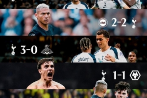赛后热刺官方晒出了球队近期的战绩:3-0西汉姆、1-0比利亚雷亚尔、2-2布莱顿、3-0唐卡斯特流浪、1-1狼队、2-2博德闪耀、2-1利兹联。