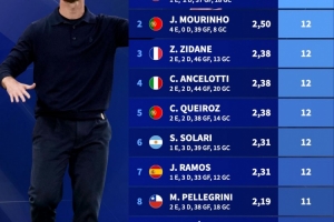2000年以来皇马主帅前16场比赛胜场榜: