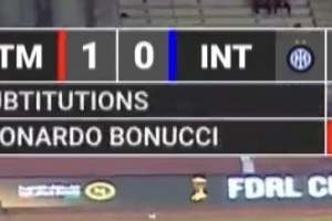 在比赛进行到第53分钟的时候,国米用小将卡兹马斯基替换下小将莱昂纳多-博沃,但赛事转播方却提示国米用埃里克森换下了博努奇。