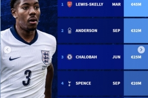 斯凯利(阿森纳,3月上演首秀):4500万欧元