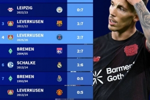 体育资讯10月22日讯 在本轮欧冠,勒沃库森2-7惨败给巴黎。德转也盘点了德甲球队在欧冠历史最大比分失利榜单,具体如下:
