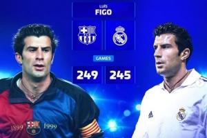 菲戈:巴萨249场、皇马245场