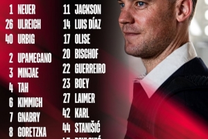 体育资讯11月3日讯 拜仁将在本轮欧冠迎战巴黎,球队也公布了本场大名单,具体如下: