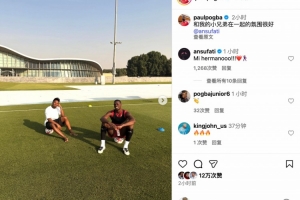 博格巴社媒配文写道:和我的兄弟在一起,感觉超棒!
