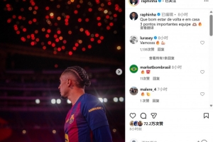 本场比赛也是巴萨回归诺坎普球场首战,迎来伤愈复出的拉菲尼亚在社媒晒照写道:“回家的感觉真棒!球队取得关键三分”