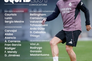 体育资讯1月4日讯 北京时间1月4日23:15,西甲第18轮,皇马对阵贝蒂斯,皇马公布本场名单,卡瓦哈尔回归,姆巴佩伤缺,马斯坦托诺在列。