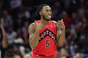上半场比赛,猛龙全员进攻端都状态不错,内外线都多点开花,全队半场45中26,命中率57.8%;三分18中10,命中率55.6%。