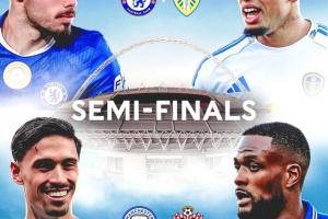 足总杯半决赛将于英国当地时间4月25日和26日在中立场温布利球场举行,采用单回合制,90分钟内打平则进行30分钟加时赛(上下半场各15分钟),若仍未分胜负则通过点球大战决出胜负。